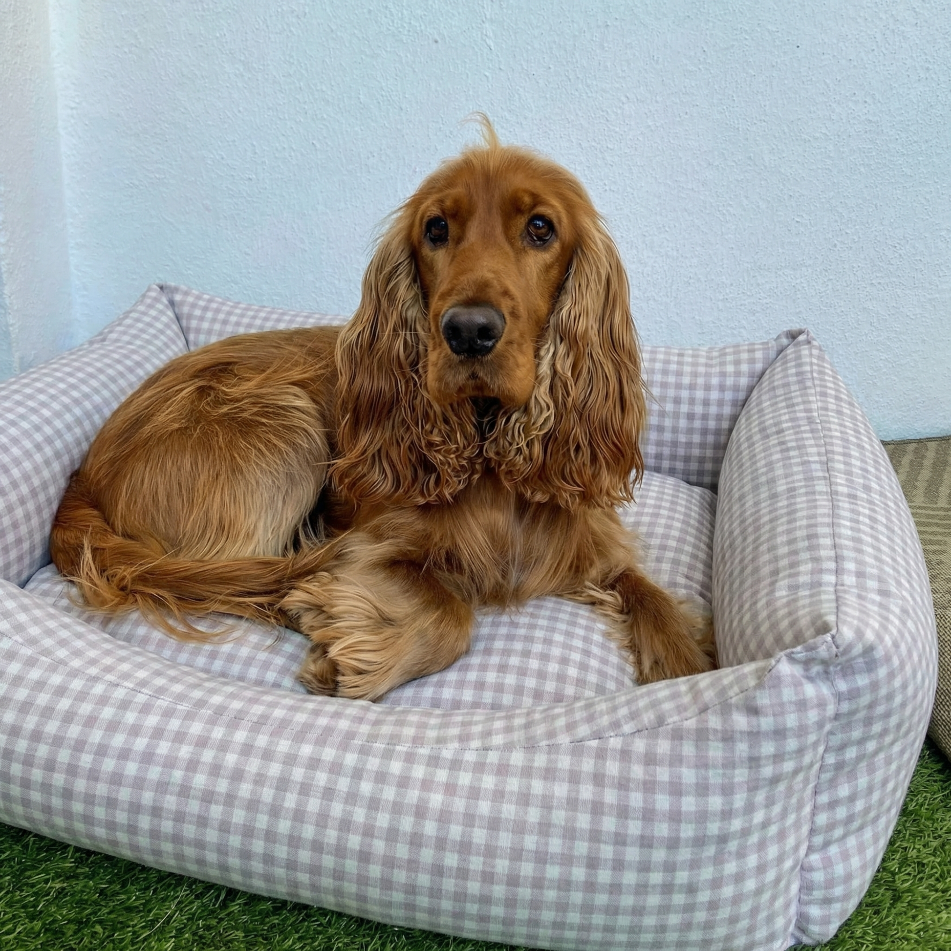 Cama para mascotas Vichy Gris . Rellena de fibra de buena calidad .