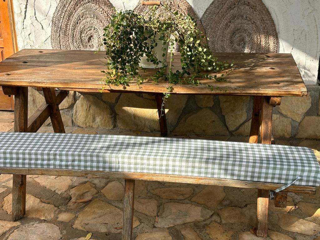 Cojín para banco con relleno de espuma incluido y desenfundable para un fácil lavado.Medida estándar de 35 x 170 cm o si necesitas una medida especial puedes contactar al 604 86 67 90