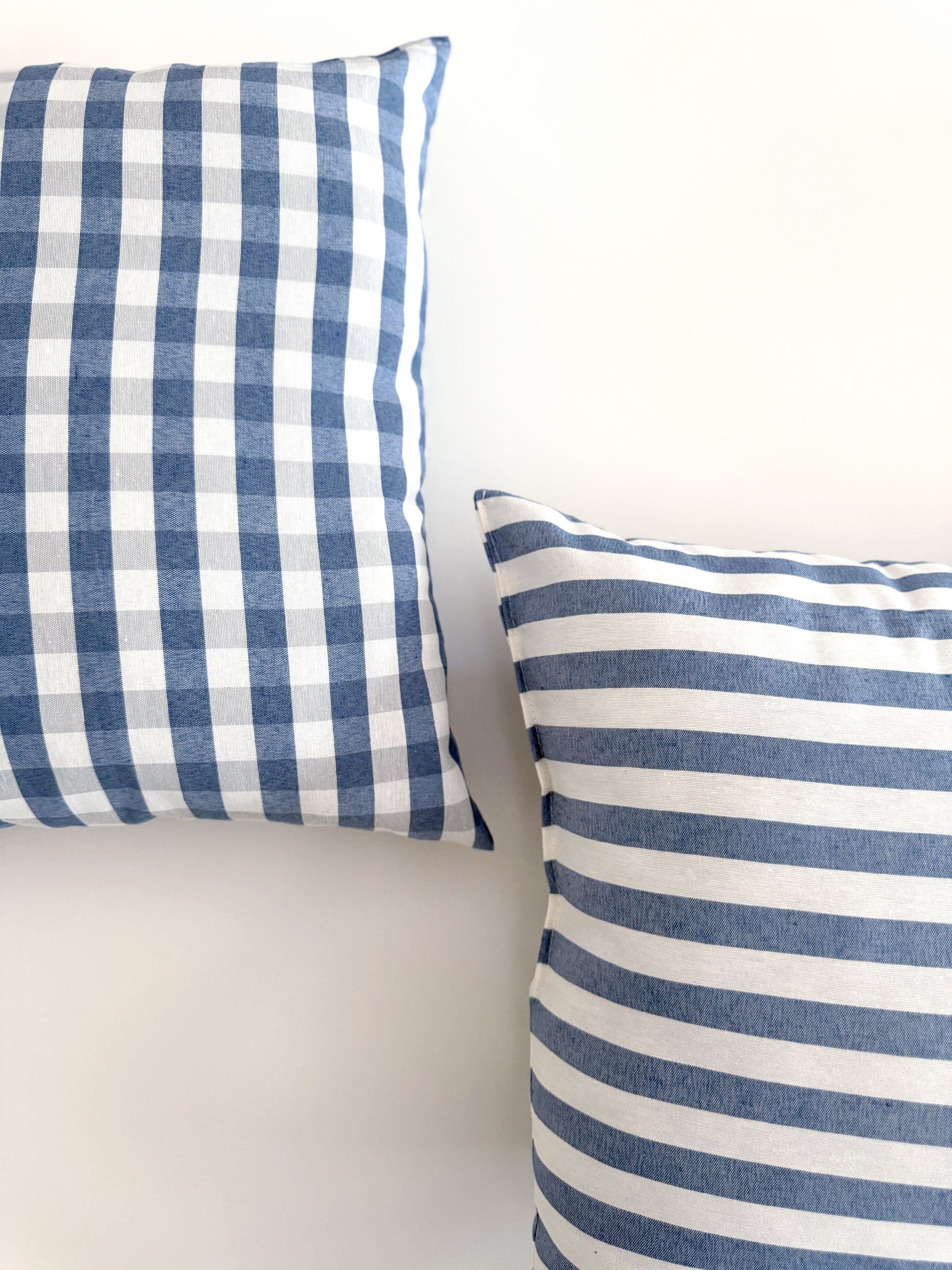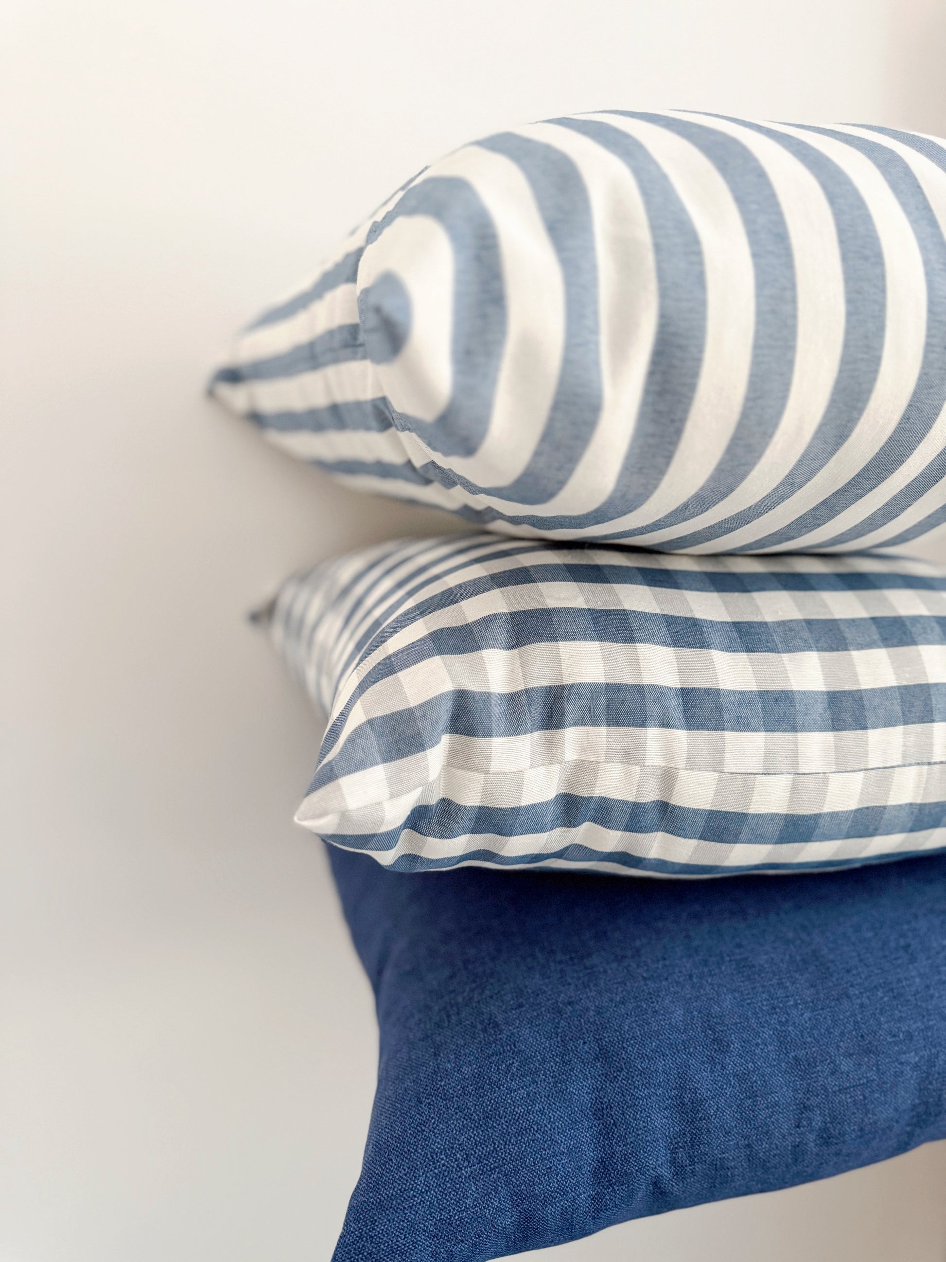 Funda de cojín de vichy azul . Fundas de cojines 80% de algodón natural de alta calidad que ofrece una sensación suave y agradable.